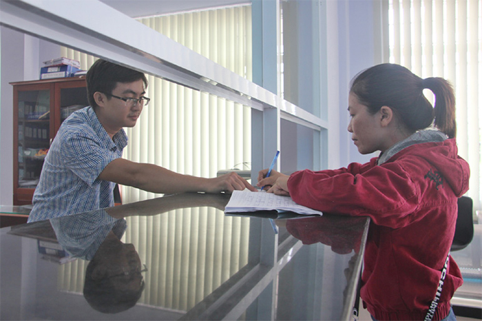 Cán bộ Chi cục Thuế khu vực Sông Hinh - Sơn Hòa hướng dẫn người dân thủ tục khai thuế.
