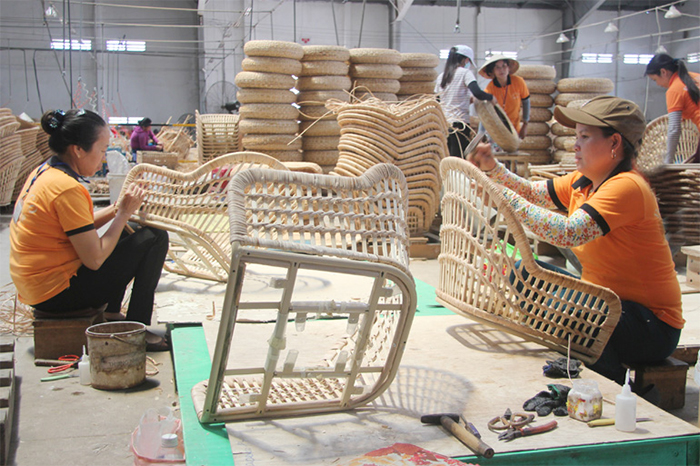 Nhờ sự hỗ trợ của ngành Thuế, các doanh nghiệp yên tâm đầu tư sản xuất, kinh doanh. Trong ảnh: Sản xuất hàng song mây xuất khẩu tại KCN Hòa Hiệp (huyện Đông Hòa).